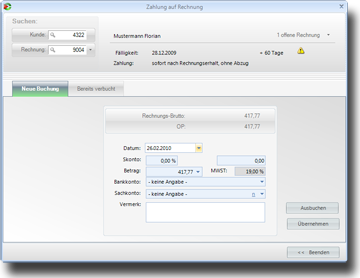 Zahlungsverfolgung ist ein sensibles Thema. Gut, wenn man mit einem effektiven und gleichzeitig flexiblen System arbeiten kann. Op-Liste mit allen Informationen, Mahn-vorschlagsliste, kundenspezifische Zahlungs- und Mahnbedingungen, Mahnung bei Klärungsbedarf aussetzen, tägliche oder periodische Mahnung, Einzelmahnung, Anmerkungen mitdrucken, Mahnungbeleg im Archiv suchen ... |